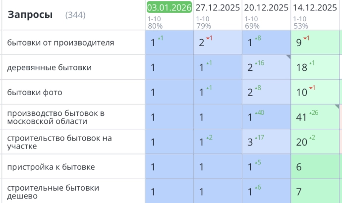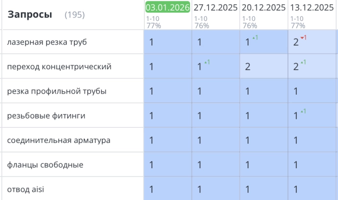 Позиции в поисковой выдаче по ключевым запросам.